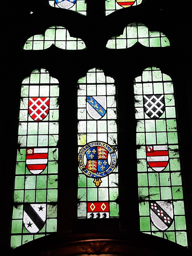 The stained glass windows above the altar had the most wonderful display of heraldic shields. The surroundings windows throughout the church had fabulous symbology to go and decipher for your pleasure.
